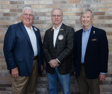 From left PHF+8 member Bob Ridgeway, Major Donor Level 2 member Charlie Johnson who presented the PHF Recognition pins and PHF+8 and Major Donor Level 1 member Don Roberts.