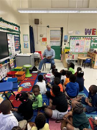 The Rotary Club of North Jackson's Past President Greg Campbell read to the Pre-K class at Walton Elementary School recently. Club members read to the students weekly.